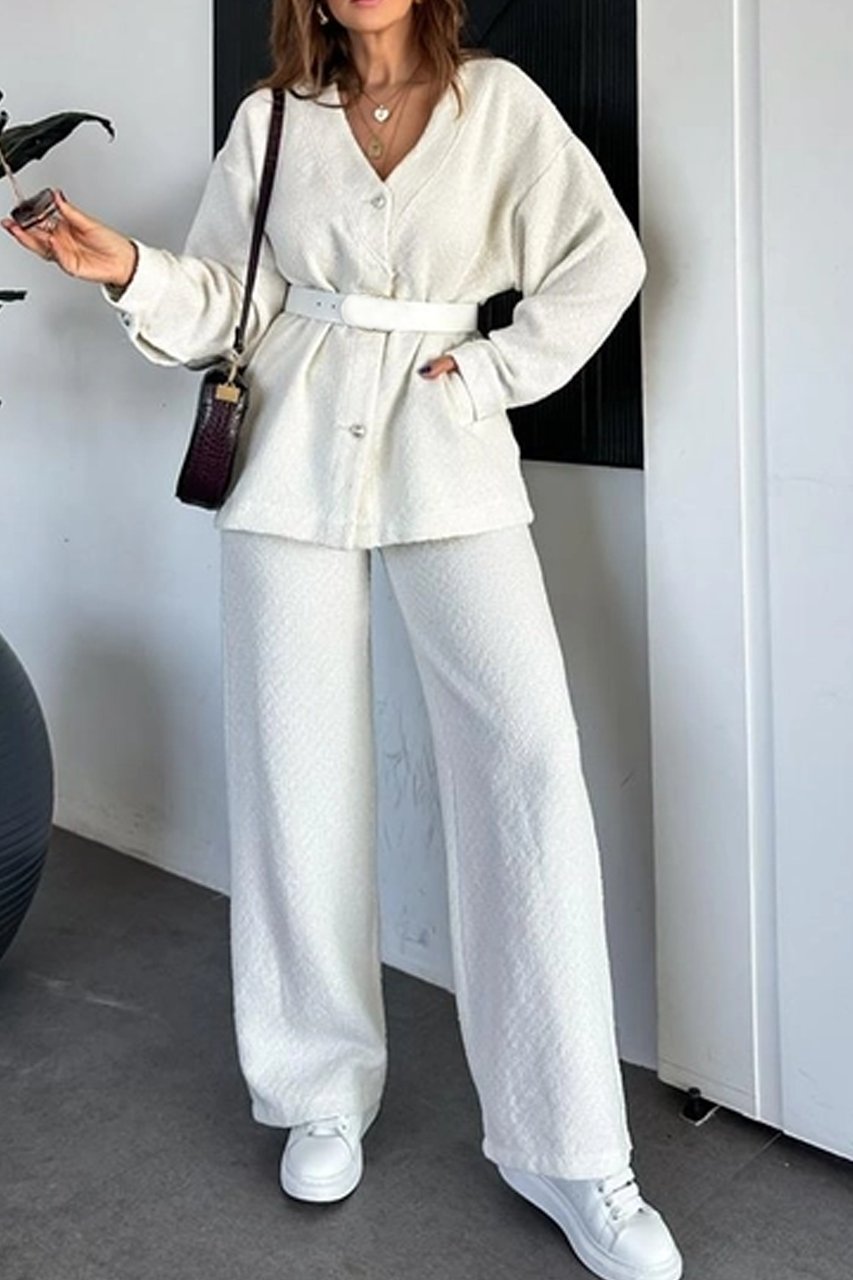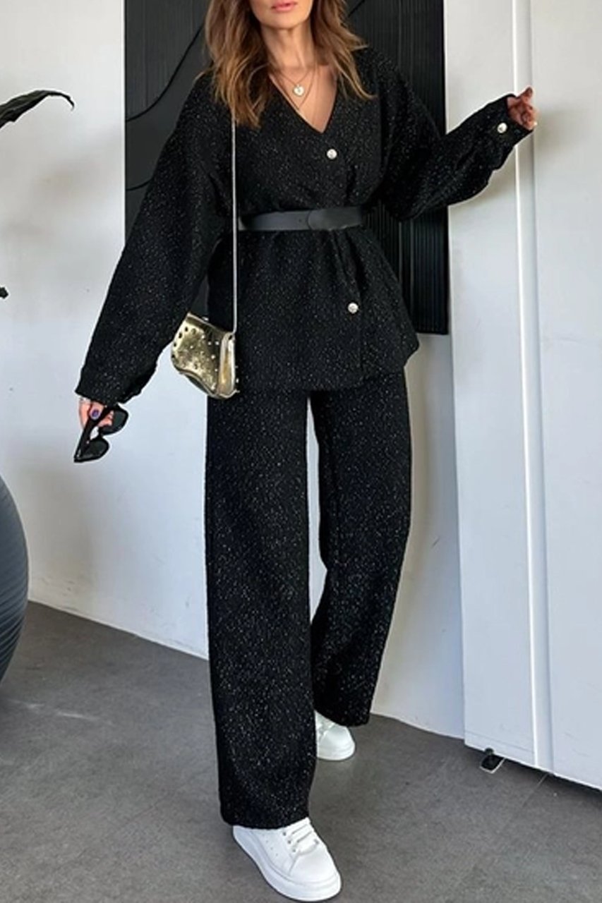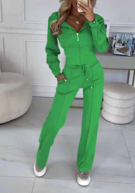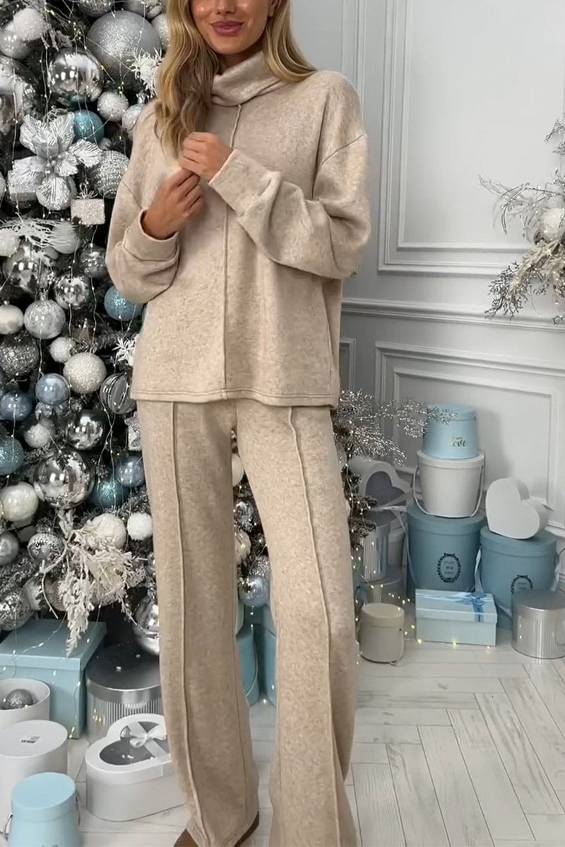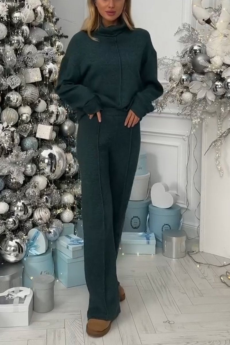 Women's High Collar Solid Color Two Piece Suit